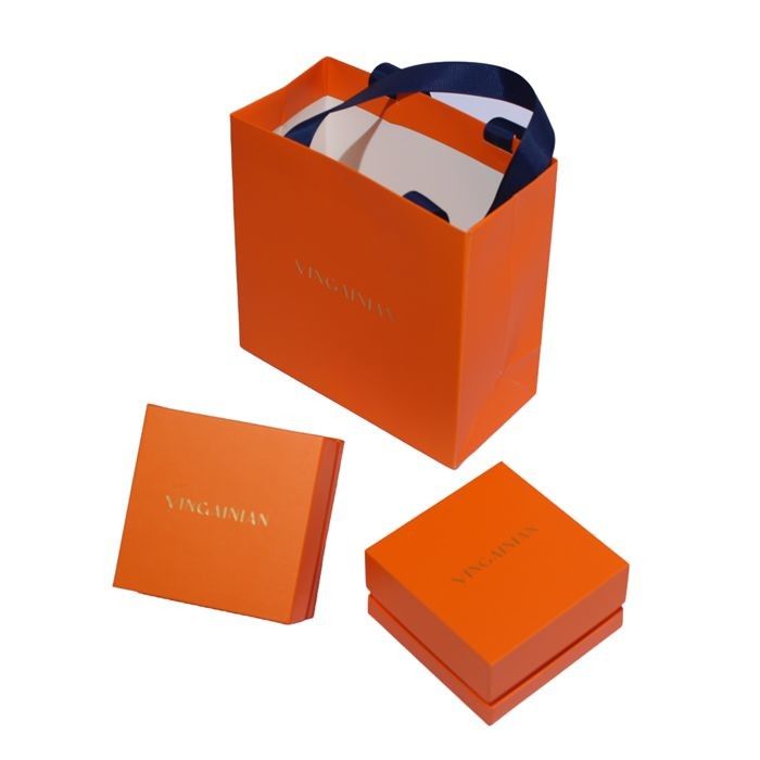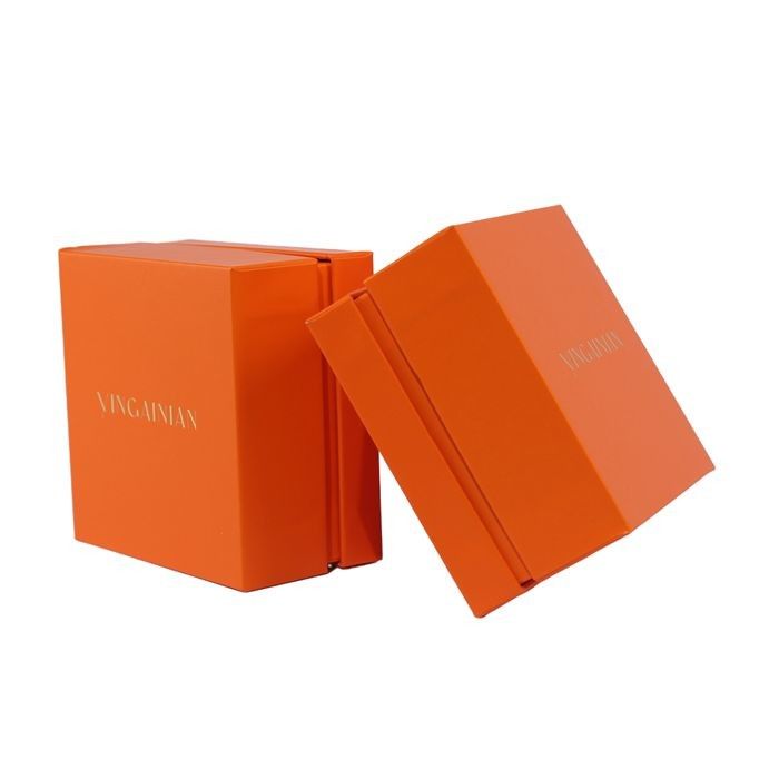 1. Color y artesanía: El color naranja brillante combinado con texto estampado en caliente crea un fuerte contraste, resaltando el logotipo de la marca y mostrando un diseño simple pero sofisticado.
